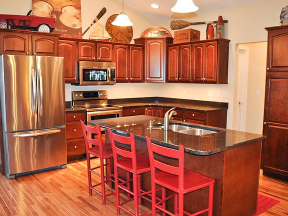 Open concept home located on big lot in a great neighborhood (Lake Creek area). Granite countertops, hardwood floors, maple cabinets, and Anderson windows are a few of the high end features of the home. Premium Kitchen Aid appliances and premium window coverings. Two gas fireplaces, master suite, covered porch, and 2 1/2 car garage. 3 bedrooms upstairs and one downstairs. Great home for anyone! A must see!