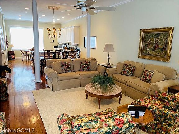 Beautiful 3 bedroom condo overlooking Fly Creek Marina. Spacious living area with elegant gas log fireplace. Private elevator. Tons of storage space. 3rd floor is a total master bedroom retreat. Large courtyard. Single car garage and single car carport. New a/c in 2020. 3rd floor unit is 4 years old. Great location. Walking distance to downtown Fairhope. Move-in ready.