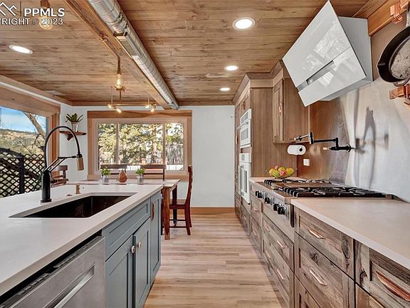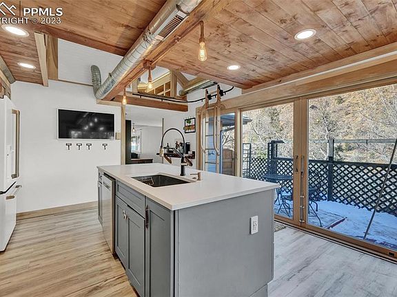 Custom, custom, custom! Probably one of the cooler houses in Manitou. Amazing and completely updated home looks across at the Manitou Incline, Cog Railway, and foothills leading directly to Pikes Peak. Huge chef's kitchen with Cafe appliances opens to small front patio. Large living room with custom built-ins and electric fireplace. Original fireplace in a sitting area. Master boasts the CLIMBING WALL you never knew you needed. (Master is considered non-conforming with no built in closet) Two lofts above the kitchen, accessed by a library ladder. TV's in living room, kitchen, and loft remain with the house. Hand-built wood-burning hot tub in the backyard. Two car garage with tons of storage. Large covered pergola/patio with yard that nestles into the hillside. Huge lot. Amazing location to enjoy the Manitou Incline, walkable to downtown Manitou, and all that the area has to offer. ***Showings begin on Friday, January 20.