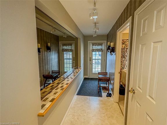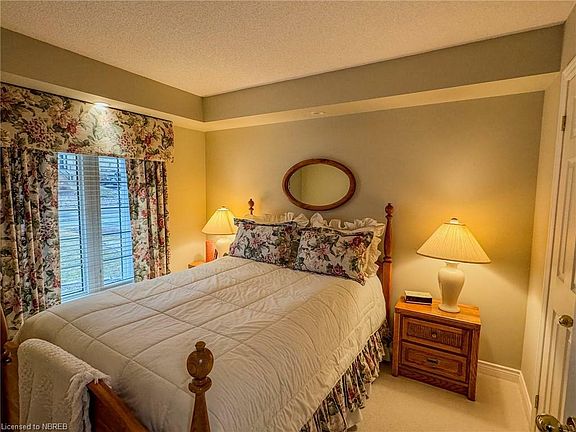 Elegant professionally designed end unit luxury townhome backing onto Osprey Links golf course. Open concept gourmet kitchen with maple cabinetry complete with a granite counter top and a breakfast island. Custom lighting throughout. Living room with a patio door to a 11'9x14'8 enclosed 3 season sunroom overlooking the scenic 3rd hole fairway. A private separate dining room with French doors this could easily converted to a 3rd bedroom. A convenient main floor bedroom and a custom walk in shower completes the main floor. On the second level is the luxurious loft bedsitting master bedroom overlooks the main floor with a 5 piece ensuite bathroom including a jet tub and a walk in closet. The fully finished lower level includes a large recreation room with garden doors to a private patio and pergola. built in bookcase and entertainment centre complete with radiant hot water in-floor heating. This home is complete with many extras, such as custom 2 wooden blinds and window treatments, all appliances, central vac, inground sprinkler system, private driveway. Forced air gas heating and central air conditioning. A truly an exquisite home for the right buyer. All furniture are negotiable as a turnkey home just move in and enjoy.