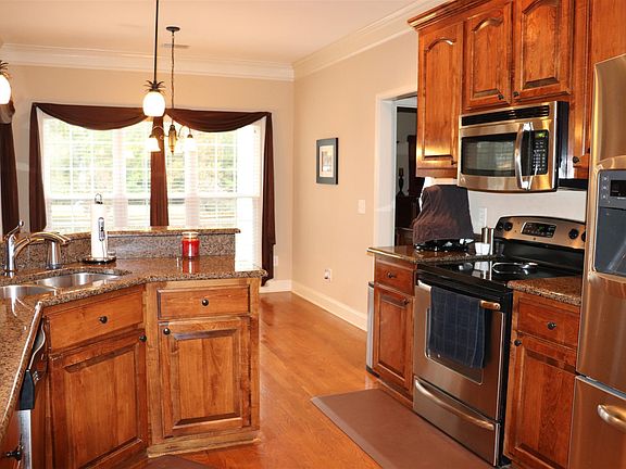• RoomKitchenFeatures: Granite Counters, Pantry, Eat-in Kitchen, Floors-Hardwood, Cabinets-Stained