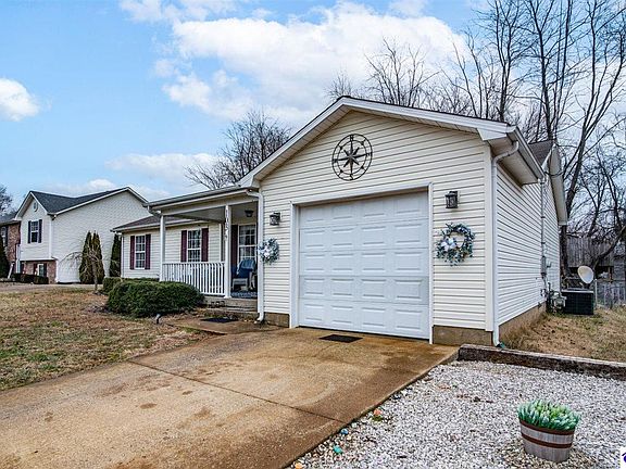 If you're looking for a lovely 3-bedroom/2-bathroom home all on one level that is close to schools, shopping, Ft. Knox, and even a golf course, this is the home for you! Situated on a cul-de-sac, it boasts lots of outdoor spaces from a covered front porch to a spacious deck in a fenced in back yard with a firepit and a playhouse/treehouse. This open concept home features vinyl flooring and newer carpeting in the bedrooms and laundry conveniently located off of the spacious kitchen equipped with an island. Primary bedroom has a walk-in closet and its own full bathroom. With a quiet street and an enjoyable backyard with garden spaces off of the deck, this hidden gem awaits its next owners!