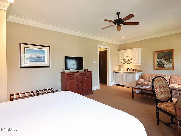 The ULTIMATE lock and leave lifestyle! This exquisitely appointed 1-bedroom, 1-bath studio suite located in the private/gated Forest Creek Golf Club has everything you need for a quick retreat to Pinehurst. This suite has over 500 square feet, with an ample sitting area, a king-sized bed, flat screen TV, a Queen sleeper sofa and a mini frig/sink. All furnishings are included. Membership is required. Each of the 11 suites are privately owned. .