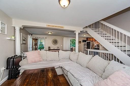 Updated, well maintained Cape on Dracut's East side with a wonderful open floor plan! This home boasts an updated kitchen with stainless steel appliances and ceramic tile floors, ship lap accent wall with bay window in the living room, large dining room, gorgeous hardwood floors running throughout the first floor, good sized first floor bedroom, contemporary full bath, newer roof, vinyl siding, electrical, hot water tank, and pool liner & pump, tons of natural light, ample storage space, and so much more! Upstairs is where your master bedroom retreat can be with one room for sleeping and the other for your walk in closet! Enjoy the back deck over looking your pool and large, well manicured, private lot. Ideal location that is close to Rt. 93, tax free NH, shops/restaurants, and everything else Dracut has to offer!