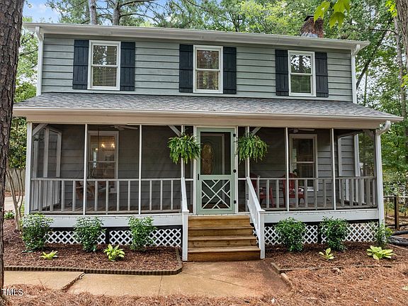 Welcome to 103 Fox Ct. A lovely colonial cottage on over 1/3 of an acre with mature trees on a quiet cul-de-sac in the heart of Cary under $500K. Although convenient to all things Cary, the owners have created a rural experience complete with chicken coop, laying hens for fresh eggs, a detached cedar-lined 2 car garage/workshop, frisbee disc golf target, fire-pit, hammock and a fenced-in backyard for your furry friends. The screened-in front porch is perfect for relaxing on those long summer days. The wood-burning masonry fireplace offers a warm and cozy retreat in fall and winter. This cedar-clad home has been meticulously maintained with new roof, new electrical panel and vapor barrier in 2017; updated garage/workshop with additional outlets, cedar wall panels, and new work benches in 2018; new electric water heater in 2020; front porch reno. in 2023; kitchen and office reno., exterior painting of house and garage, new landscaping, and new deck boards on rear deck in 2024. The landscaping is mostly natural with manicured beds for that easy to care for lifestyle to ensure you can immerse yourself in what Cary has to offer. Shopping, parks, greenways, lakes, breweries, and restaurants to satisfy any foodie craving are all nearby. Do yourself a favor and book a showing for your clients' next home.