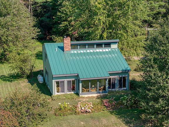 This contemporary designed home, has tall ceilings, and great light filtering in through numerous windows. Looking out over a generous lawn with mature plantings and lovely landscaping. Located on a quiet dirt road and very private.