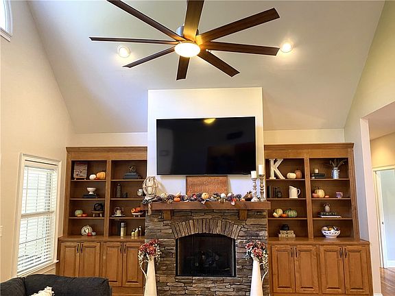 - Bathtub, Ceiling Fan(s), Dual Sinks, French Door(s)/Atrium Door(s), Fireplace, High Ceilings, Jetted Tub, Bath in Primary Bedroom, Main Level Primary, Smooth Ceilings, Solid Surface Counters, Walk-In Closet(s), Walk-In Shower, Window Treatments, Breakfast Area