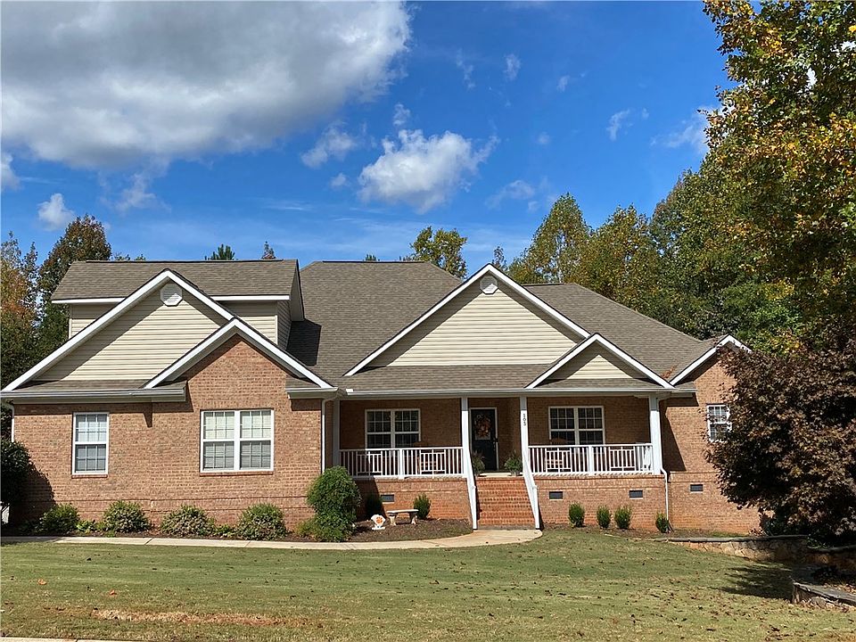 Wonderful family home in the edge of Easley offers plenty of space for your family to spread out. This house originally has custom features including marvelous cabinet work, beautiful bathrooms, bright cheerful windows, and a pleasant sunroom to view the inground pool. There are key spots to relax and enjoy company on the party ready poolside patio or the large front porch. Inside there are four spacious bedrooms plus a bonus room. The kitchen cabinets truly are exceptionally crafted, matching the living room custom built-in shelves. The master bedroom has extra sitting area, perfect as an office space or it could be a sweet reading nook. The large walk-in closets in the master add lots of storage alongside the luxurious master bath with a great shower cave, twin sinks, and a jetted tub. A few mentionable amenities not to be overlooked include the front pocket screen door, in-glass door window blinds, and a tankless gas water heater in an extra tall crawl space that allows ample room to stand or store equipment. Outside a large portion of the lot is fenced to match the well-made stair rails leading to the back deck.
