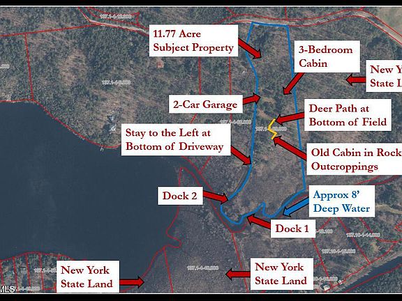 Charming 3-Bedroom Cottage with Lake Access.....Discover a rare opportunity to own a 3-bedroom, 2-bath cottage with access to Paradox Lake. Nestled on 11.77 acres of gently sloping land, this property offers private frontage along Paradox Creek—the scenic inlet to Paradox Lake—complete with two private docks. The cottage features a spacious screened front porch and a wrap-around deck, perfect for relaxing and taking in the tranquil setting. Tucked into the raised rock outcroppings sits an old log cabin (in disrepair), offering a pre-existing foundation for a future building in the same location. With New York State land bordering the eastern side of the property, you'll enjoy unmatched privacy and natural surroundings. Conveniently located just 10 minutes from both Schroon Lake and Ticonderoga, this property combines seclusion with accessibility. A unique and versatile retreat—ideal for those seeking lake access, acreage, and the chance to create something truly special.