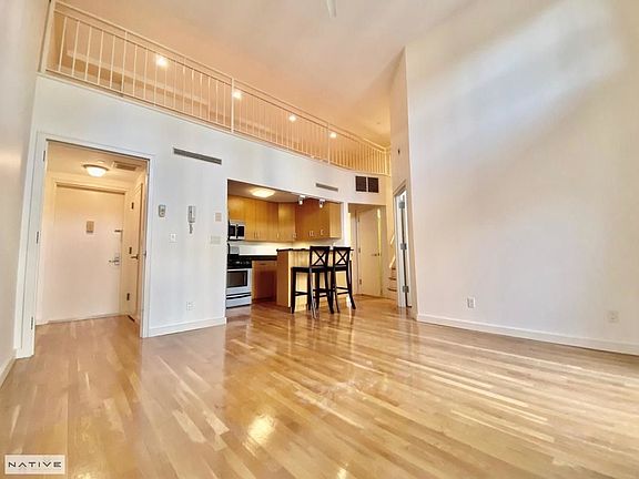 NO FEE! GORGEOUS 1BR in PRIME GREENPOINT! Laundry/Dishwasher/Balcony/Mezzanine NO BROKER FEE! This 1BR just hit the market for a January 1st move-in! It is in a new construction building on Freeman Street in the heart of Greenpoint. The building and unit are in pristine condition! As you enter the apartment you will find yourself in a spacious living room with 15' high ceiling and sliding glass doors that lead out to a larger balcony. Enjoy new hardwood-oak flooring throughout the unit. Nestled off to the side is the kitchen area featuring full-size stainless-steel appliances including a dishwasher and a breakfast bar. The bathroom is spacious with top-of-the-line finishes. The bedroom is drenched in natural light and also has high ceilings. There is plenty of room for a queen (or king) bed and furniture. Right outside of the bedroom entrance, you will find a staircase that leads up to a large mezzanine that is great for storage or even sleeping quarters. The mezzanine is about 4' from floor to ceiling. Down in the basement is a bright & clean laundry room with multiple washers and dryers. The apartment also features central heating and cooling! Live on Freeman Street, right off Franklin. It is actually right next door to the immensely popular "Bakeri." This is just blocks from the East River Ferry, the subway, and 3 bus lines. This is prime Greenpoint, where everyone wants to be! Sorry, no dogs. 1 cat is allowed. Call/Text/Email with any questions or to schedule an appointment to view. Not exactly what you're looking for? Email me your search criteria and I'll let you know what else I have!