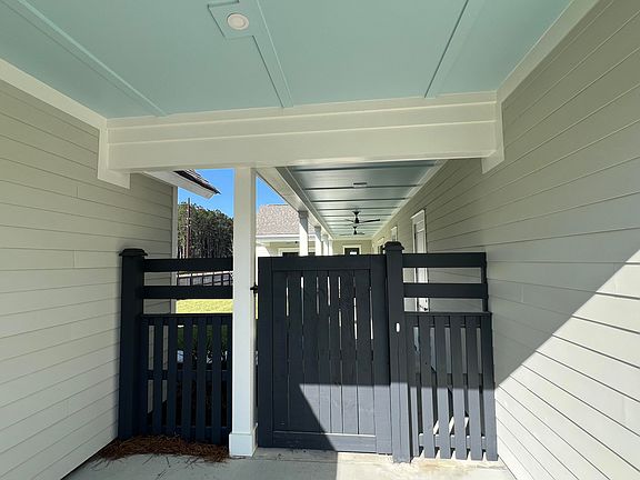 Move in Ready and Close ASAP! This beautiful single story Atria floorplan features courtyard living which is something a little different and unique to the other offerings in Nexton. This home is 1,705 sqft and has a generously sized owners suite with a sliding glass door that enters onto your private covered patio in the courtyard. At the other end of the home another set of sliding doors lead to the open kitchen, living room, and dining room. The gourmet kitchen features a large kitchen island with quartz counters and farmhouse sink. A statement beam runs along the 13ft vaulted ceiling in the main living area. A full unfinished guest house is located in the courtyard that can be transformed into guest space, office or hobby space.The Atria I courtyard style home is all about indoor/outdoor living. The open living area has 2 sliding glass doors that lead to a wrap-around covered porch. The porch itself is another 409 sq feet of outdoor living space. This leads to an open courtyard area with access to the Cabana Outvilla along with being fully fenced. The home has an attached 2 car garage with front load entry. This one-story floorplan with 2 bedrooms and 2 bathrooms with the included unfinished Cabana Outvilla. The primary bedroom with large walk-in closet & spacious primary bathroom runs along the courtyard and has a sliding glass door to the covered patio. The other guest bedroom is toward the back of the home off of the hallway from the living room. The front door leads to the open floor plan with vaulted ceilings in the living room, dining area and kitchen. Large glass slider doors open the living area to the covered porch that leads to the courtyard. The yard professionally landscaped and fully fenced. ENERGY SAVINGS FEATURES: tankless water heater, radiant roof barrier, programmable thermostats, single hung low-E windows, 14 SEER Lennox HVAC HOME AUTOMATION SYSTEM: smart hub control panel and App to remotely access doorbell camera, z-wave light switches, smart door lock. KITCHEN FEATURES: quartz counters, stained cabinets white a focal point kitchen island (painted cabinets are an option), 30" gas range, stainless steel vent hood, dishwasher and built-in microwave, Delta faucet, soft close drawers and trash can door. INTERIOR FEATURES: 10' ceilings on first floor, 8' interior doors on first floor, craftsman still trim package, luxury vinyl plank flooring in the living areas, gorgeous lighting fixtures and upgrades tile selections.