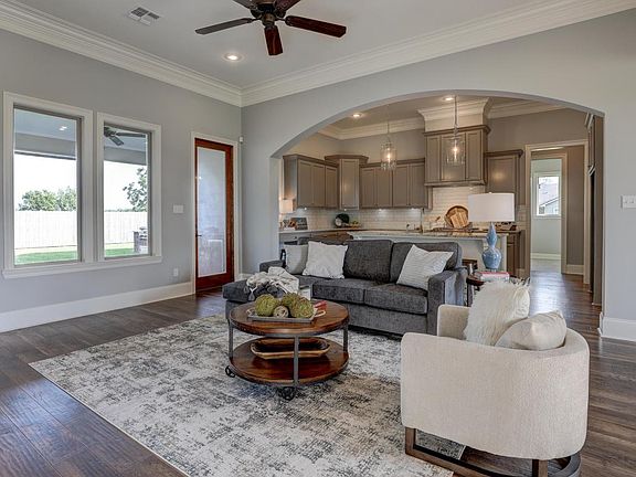 Youll want to make this house your home! Truly a custom feel. From the front door, you will know that this home is special with the huge beams separating the dining room from the living area and entry. Wood flooring throughout living/dining with triple crown molding and fireplace. Kitchen is open to living room with large island and seating for four. Tons of storage with locally made wood cabinets plus stainless appliances and gas stove. Drop zone at entry from garage with bench, hanging hooks, & more storage to keep you organized. Triple split plan with two bedrooms sharing a custom bath in hallway.Bedroom 3 is down a separate hall with its own full bath (a perfect mother-in-law suite or home office). Master has real wood floors, barrel ceiling and lovely bath with separate vanities, custom tiled shower, large soaking tub and built-in storage, plus the spacious walk-in closet. As if all of this wasnt enough, your fully fenced huge backyard is amazing! Back patio is complete with full outdoor kitchen and still plenty of room for your pool. The neighborhood is secluded with curb & gutter, sidewalks, and a neighborhood playground down the street. If this house isnt absolutely perfect for you, Platinum Homes can create and build your custom dream home on one of the many additional lots they have available.