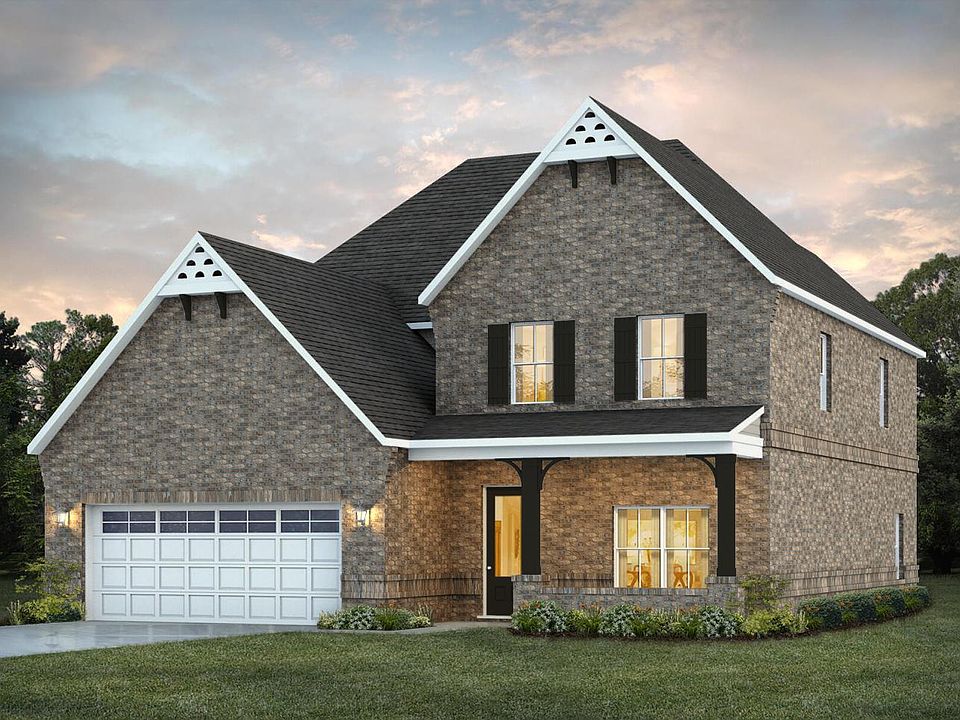 Five bedrooms and generous storage space make the Endsleigh floorplan a perfect match for a big or growing family. Not only does the Endsleigh have an impressive great room, it also includes a spacious kitchen with its own convenient breakfast area. The beautiful granite countertops and gleaming cabinets complete the sophisticated look, while the large island in the middle provides room for preparation and entertaining as it is open to the great room. This floor plan features a foyer entrance and flex room that can be used as a formal dining room or office space. The huge master bedroom is located accessibly on the first floor where it connects to a master bathroom complete with separate shower and garden tub along with a double vanity. The master bath then connects to the great walk in closet that is conveniently located near the sizeable laundry room with plenty of space for a washer and dryer along with other cleaning or laundry supplies. A two car garage completes the first floor. Up the staircase to the second floor there is a common area loft that could be used as a sitting or playroom. Bedrooms two, three, and four include huge walk in closets, while the fifth bedroom still has a large closet with plenty of space for clothes, shoes, and more. Two full bathrooms complete the second floor. The Endsleigh is a modern and thoughtful floorplan that caters to privacy and togetherness all in one great house.