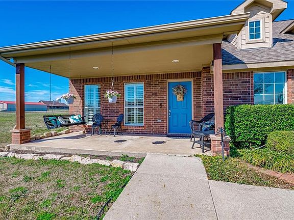 Gorgeous home on a 1.5 acre corner lot. You are sure to love the peace and tranquility of two covered patios, one for sunrise, and one for sunset. The open land has space for entertaining, activities, pets, pool, or a shop. The home boast high ceilings, plantation shutters, 18 inch tile, corian counter tops, and 42 inch cabinets. Master suite has a sitting area, garden tub, separate vanities, and spacious closet. Easy access to I35 and 380 allows you to enjoy the country, yet be minutes away from the city. Come tour this beautiful home today. Buyer to verify all information and measurements.