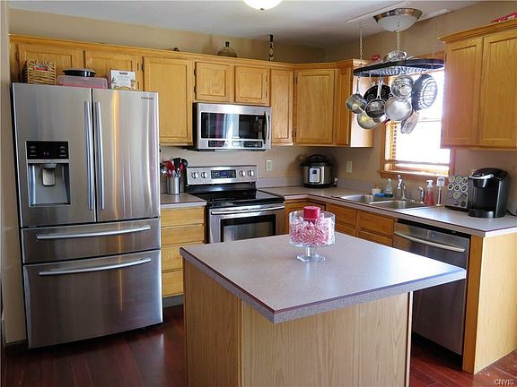 Waiting for that perfect home in Lakeland? Don't miss out on viewing this nice raised ranch with beautiful stainless steal appliances and engineered laminate flooring. Master bedroom has its own Master bath for privacy and comfort. Remodeled over the years with finished lower level for that instant cozy rec room or extra bedroom space with walkout to your paved patio for entertaining. Yard is very spacious, fenced in, and includes the shed. Check out the great view from the deck that overlooks the backyard for entertaining with family and friends. This home has Solvay Electric and the blacktop driveway was updated to have 6 available spaces. Close to highways and the schools in the Lakeland area. Sauna in lower level is available for full price offer. So what are you waiting for? Book your showing today!