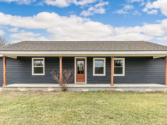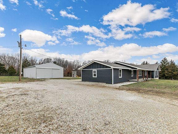 Newly remodeled 5 bed/4 bath on 2.6 acres in Marshfield! Updates include: all NEW kitchen appliances, energy efficient double pane windows, air conditioning unit, high efficiency heat pump, insulated ducting , breaker box, freeze proof PEX plumbing, all new siding and so much more! From the covered front porch, walk into beautiful hardwood floors and a neutral color scheme. Front living room is open to the dining room and kitchen. Kitchen has stainless appliances, tile backsplash, ample cabinet space, and an adjacent laundry area. There are 2 primary bedroom suites, a hall bathroom, and 3 additional bedrooms. There is a newly added family room with vaulted ceilings, a bathroom with dual sink vanity, and extra storage. Outside, there is a 24x40 outbuilding with electric that makes a great workshop. Located off Rt 66 with quick access to I-44 between Marshfield and Niangua.