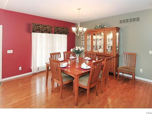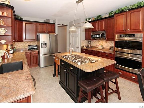 Fantastic location just minutes from Hwy 364, Hwy 40 easy commute PLUS an outstanding floorplan. 3 car garage, vinyl siding, over 2300sq foot on the main and apx 1800 sq ft finished in walk out finished LL. Beautiful wood floor in entry, dining & great rm. Soaring ceilings in the greatrm w/vault, gas FP & custom blinds. UPDATED Gorgeous kitchen - GORGEOUS GOURMET kitchen w/lg center island, 5 burner range, stainless top of the line appliances, dual ovens, granite counter top, bin micro, pantry +2nd pantry, upscale backsplash! Plan desk/organization center w/cabinets. Divided floor plan ~ Private master suite on one side of home, offers bay window, dual door entry, dual closets, wonderful luxury bath. Bed 2 &3 PLUS Bonus media, study or flex room w/built in bookcases. MFL.WO LL 1/2 bath, bedrm, office or bedrm 5, bar kitchenette w/cabinets, full size refrig (nego), family rm, billiard rm. Central vac & broom. Nice deck, tree line, patio, under deck screened rm, dual walk outs. Must see!