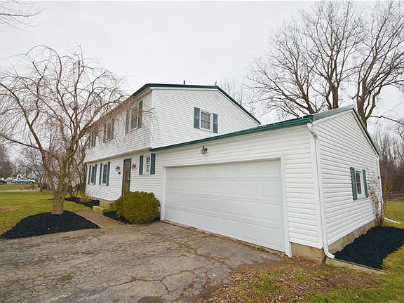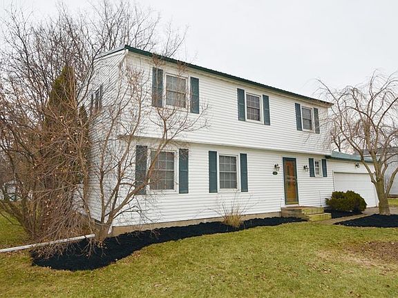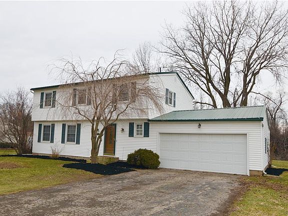 Wonderful spacious colonial opportunity in Henrietta's St. Joseph's Farm neighborhood! This 4 bedroom 2.2 bath home features vinyl siding and a large nearly half acre private lot. The first floor features a large living room and dining room area with a flexible space for a formal dining room or family room with sliding door to the rear deck. Upstairs, the bedrooms are spacious and comfortable. The primary is large with a walk-in closet and half bath. The basement is mostly finished with full bath and plenty of room for storage and updated mechanics. Outside, the back deck overlooks the wooded back yard. Metal roof, newer carpet, large garage, and much more await! Delayed negotiations until Monday Feb 8, 2021 @ 6pm