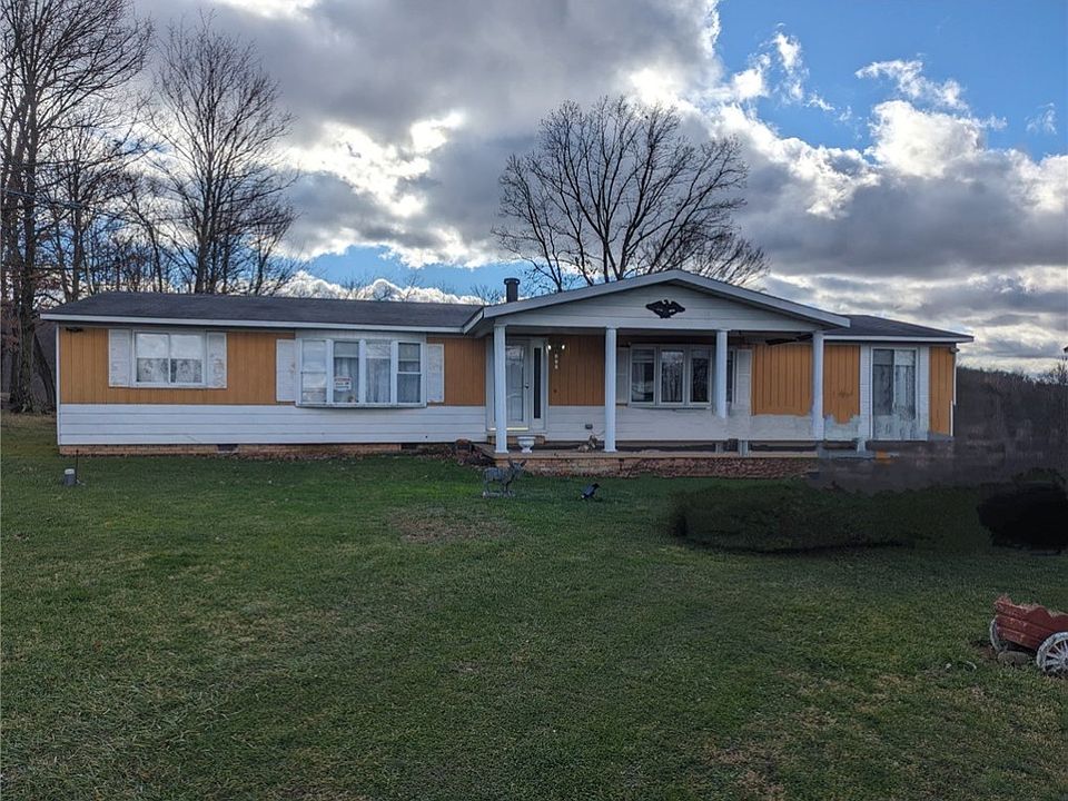 Really nice level semi-wooded (1.37 acre) corner lot with plenty of privacy. Easy access to Rt. 43, Morgantown, Uniontown, the Laurel Highlands. Home has been well-maintained and is ready to move into, just needs your personal touches. Three bedroom two bath. Master Suite at one end of home, other BRs and bath opposite end of home. Open floor plan in LR,DR, Kitchen and a family room. Wood burner located in center of home. All one level living.