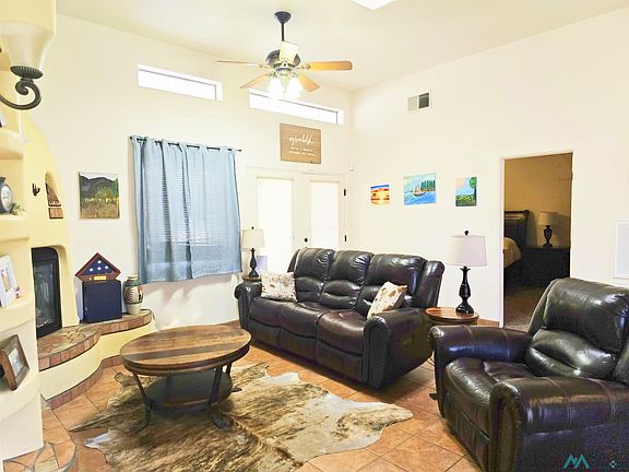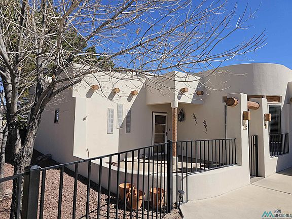 Live at the Golf Course in this 1515 sq ft, 2 bedroom, 2 bath Adobe styled home with front gated patio, living room with Kiva fireplace and built in shelves. Tiled floors, skylight, eat at bar kitchen with formal dining area and built in hutch. All appliances stay including washer and dryer. Pantry, separate laundry/mud room. Split large bedroom plan w/baths and walk in closets. Tub in one, walk in shower in the other. Office off the kitchen with entrance to outdoor open window wall enclosed patio with another fireplace and a hot tub. Firepit in the rock landscaped/walled yard and distant mountain views. 1.5 attached garage for large car/truck and a golf cart. Easy location to downtown Deming, access to the I-10 to Las Cruces, Lordsburg and the Airport at El Paso, Texas. Silver City just to the north and Columbus, NM to the south.
