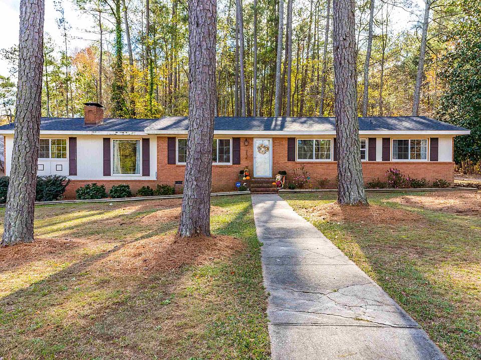 LOCATION! LOCATION! LOCATION! Here's your chance to live in Downtown Clayton! Tucked away on a large private wooded lot, this BRICK RANCH offers 4 beds, 2 baths, & 1 car rear entry garage. Updates include - NEW Windows! NEW Roof! NEW crawl insulation & vapor barrier. Fenced in backyard w/ detached workshop. This home also features granite countertops, stainless steel appliances, masonry fireplace, original hardwood floors, & more! Walking distance to greenway, community pool & new community splash pad!