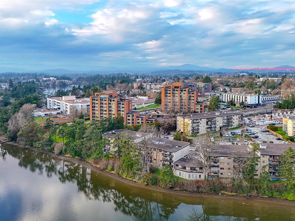 Top Floor Penthouse suite at the popular Treelane Estates. Waterfront Living on the Gorge Waterway! Bright one-bedroom suite with stunning southwest water, city and mountain views. Treelan Estates is comprised of two steel & concrete buildings that are quietly set back from the road on the Gorge Waterway. This suite boasts a spacious living/dining area, galley kitchen, large bedroom, and a storage room. Great views from all windows plus a large view balcony. Laundry is conveniently located on same floor. The building itself is known for its strong amenities, including a rooftop patio and lounge, kayak and bike storage, workshop, guest suite. Located along the scenic Gorge Waterway with walking trails and water access nearby, this central location provides easy access to downtown Victoria, Tillicum Centre, and major transit routes. Affordable entry into a waterfront complex in a desirable, established community.