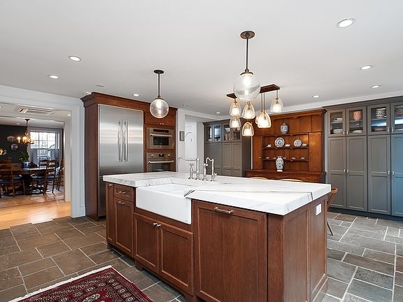 This gorgeous 25 foot wide single-family townhouse has been meticulously renovated with the finest craftsmanship and attention to detail and offers up to 5 bedrooms, 3.5 baths and approx. 3,800 sq. ft. of living space in Historic Downtown Jersey City. The stunning chef's kitchen features white Calacatta marble countertops, including a large 2.5 " thick island slab, custom solid cherry cabinetry, top of the line appliances such as a 6-burner Wolf gas range, Bosch refrigerator and dishwasher and Bertazzoni double wall oven, built-in pantry cabinets as well as a separate bar with Marvel wine fridge. Bluestone tiles with radiant heated floors round out the kitchen, and glass french doors lead out onto a bluestone patio with a natural gas line connected grill and professionally landscaped garden to enjoy year-round. Adjacent to the kitchen in the den is a media center with beautiful custom built-in cabinetry and incredible storage. The full-length parlor floor boasts two impressive modern Roll and Hill Chandeliers in both the front and rear parlor and original pocket doors. Custom walnut built-in cabinets and bookshelves add special details on this floor, along with original, ornate plaster molding, pristine ceiling medallions, and inlaid oak flooring. Elegant original ebony marble mantles in both parlor rooms set the tone of this stylish home. Upstairs you will find a very spacious chamber that provides flexible options for your taste: family room, library, playroom, guest room along with another large bedroom and one of many beautiful marble-tiled bathrooms with Kohler fixtures. The top floor serves as the private master suite overflowing with gleaming natural light and encompasses a large separate office or additional bedroom. Other exciting details to round out this fabulous home include four zones of central A/C, three skylights, Amazon Key smart lock to allow for seamless delivery of Amazon packages, Nest smart thermostats throughout the home, and spacious laundry room with full-size separate Electrolux washer and dryer. Owner also rents garage parking spot in the driveway alongside the townhouse. This perfect location leaves you just minutes from both the Exchange Place and Grove Street PATH stations as well as ferries to New York City and the Hudson River Promenade three blocks away. World-class dining, night-life options, smart boutiques, galleries, cultural venues, and Liberty State Park are all in walking distance. Three short blocks to the announced new location of Whole Foods, zoned for PS 16 and adjacent to Paulus Hook Park, which is anticipated to undergo a complete renovation, making this a very sophisticated urban home. Luxurious city living at its finest!