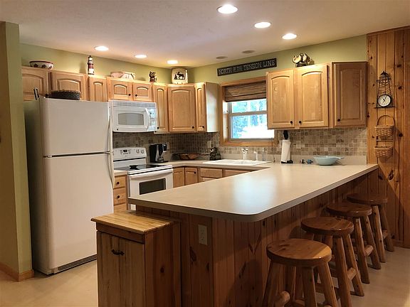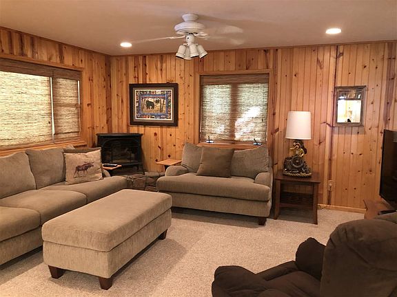 So much space from the large yard to the interior of this home! Everyone will enjoy the large family room with bar area. The home has a total of 4 bedrooms, 3.5 baths which includes 2 master suites, one on the main level and one on the upper level along with 2 other large bedrooms, large closets with plenty of storage space. You will love all the features of this home from the knotty pine accent, solid paneled doors, large kitchen, gas log fireplace, central air and natural gas FA heat. Relax on the wrap around covered porch with stamped concrete, or on the large deck with hot tub. This 112x300 deep lot has plenty of room for play and privacy. Plenty of storage for the cars and toys in the 28x32 garage. Just a short walk to road end access on Houghton Lake, or to the township park and soccer fields.