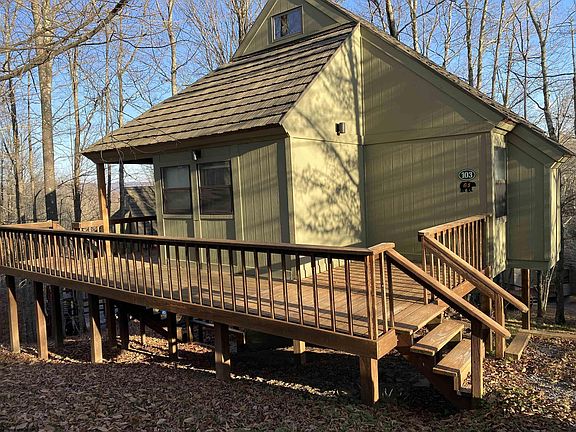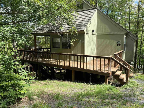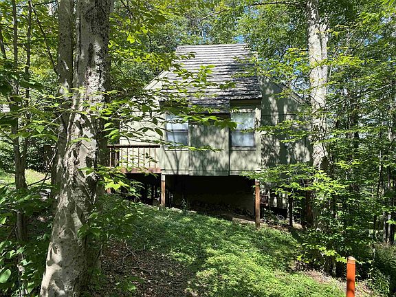 Nestled in the trees, this cute and well kept pedestal could be yours. Located in a quiet area with a cul-de-sac.Surrounded by trees in a private setting. Multiple decks New metal roof. One bedroom and a loft with twin beds. New flooring. Well equipped kitchen with numerous cabinets. Open living room with a wood fireplace. A room downstairs for games or office open to a deck. Will sell furnished.The resort offers close by a swimming pool, two ponds, a children playground and tennis courts. A lodge with spacious deck for social gatherings. A network of hiking trails available in the area. Close to State Parks, Nordic Centers and Alpine Ski Resorts. Prime location for rentals or your own quiet Getaway in the Appalachian Mountains.