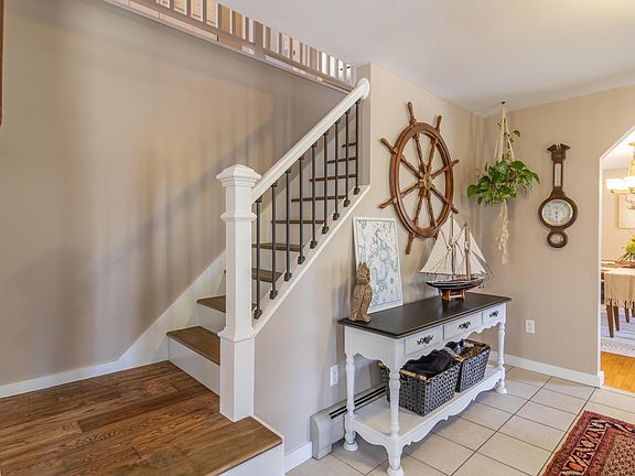 Looking for the ideal location to live close to town, but have the feel of living in a pastoral neighborhood? Look no further. This roomy colonial boasts many updates, which include all new hardwood floors throughout 2 upstairs bedrooms & hall, newly paved walkway, with landscaping, extensive covered veranda in back, and smart thermostats to name a few. Modern open-concept kitchen with brightly tiled kitchen backsplash and generous dining room will enchant the chef in your family. Delight in the raised garden beds with arbor to support existing perennial hops and a lovely firepit to relish the outdoor living space. Entertain guests on the large, covered verandah with a place to hang a hammock. This will become your go-to place throughout most seasons. Large unfinished basement with potential for a workshop and home gym and direct access to a spacious 2-car garage. This home has 4 bedrooms but the septic is for 3 bedrooms.