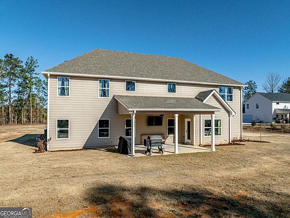 Welcome to this beautifully designed almost new home situated on 3.1 acres of open land that offers the perfect blend of space, comfort, and privacy. This 5-bedroom, 3.5-bath home features a thoughtfully planned layout with the primary suite conveniently located on the main level, creating an ideal private retreat. Just off the main entrance, a versatile flex room on the main level offers endless possibilities and can easily serve as a formal dining room, home office, or additional living space to fit your lifestyle needs. The heart of the home is the open-concept eat-in kitchen, complete with a large island that flows seamlessly into the living room-perfect for entertaining and everyday living. From the main living area, enjoy views of the expansive backyard, providing a peaceful backdrop and endless opportunities for outdoor enjoyment. Upstairs, you'll find four generously sized bedrooms, including two bedrooms connected by a Jack-and-Jill bathroom. A large open loft space overlooks the family room below, enhancing the home's airy, open feel and providing a great area for a media room, play space, or homework zone. With abundant living space, a flexible floor plan, and over three acres of land, this home offers room to grow both inside and out-all while remaining conveniently located in Griffin. A rare opportunity you won't want to miss.