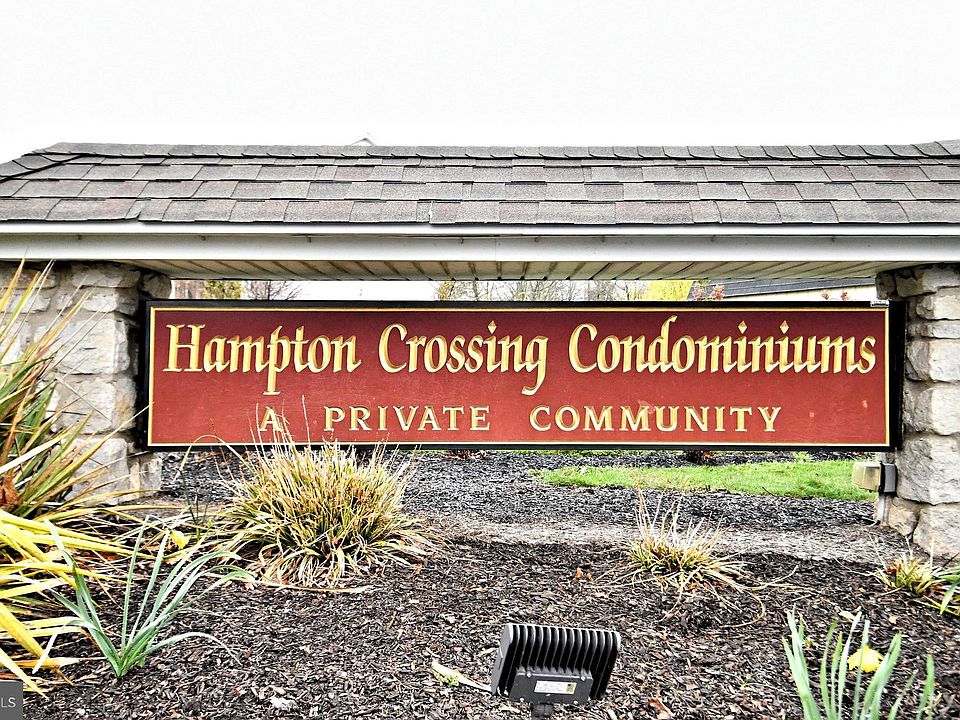Enjoy easy and carefree living in this one bedroom 1st floor condo in Hampton Crossing. This unit has a large living room with sliding glass door leading to private patio. The kitchen offers gas cooking, refrigerator and a separate dining area. There is a bedroom with plenty of closet space. Washer/Dryer are inside of the unit. 1-car assigned parking, and guest parking available and beautiful community pool. Condo fee includes Common Area Maintenance, Exterior Building Maintenance, Insurance, Lawn Maintenance, Pool, Sewer, Snow Removal, Trash, Gas and Water. Conveniently located to public transportation, PA Turnpike and Rt 95.