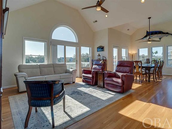 This Kitty Hawk home is one to be excited about! Located in the community of Harbour Bay this 2,400', 4 bedroom/3.5 bath home is surrounded by some of Kitty Hawk's most beautiful homes. This home's brand new entryway will make you wanting to see what's next! Nice bright top floor offers a living / dining area with hardwood floors, vaulted ceilings, Hunter Douglass custom blinds, new ceiling fans, light fixtures & expansive windows throughout. Do you have a few cooks in the family? This kitchen is large enough for all and features brand new stainless steel appliances and newly installed granite countertops. Top floor also has a powder room for your guests and a Master Suite that has a private door to the sundeck. Master Suite Bath has walk through closet, double sinks, jet tub & tile floor. Mid-floor has three bedrooms, (one is an additional master suite), Study & Laundry Room with Maytag appliances. Every bedroom in this home has an entrance to the sundecks! This Southern home has been designed for outdoor living with covered decks at the front entrance and along the back of the house and sundecks off the living, dining area and an irrigation system & new exterior light fixtures. Two car garage, plenty of storage space, and workshop. Large size lot at 15,000'. Harbour Bay Community has a walk way down to the Soundfront pier to watch some of the most beautiful OBX sunsets, community pool right across the street & a fenced playground that the kids love. This home is in excellent condition, 2017 septic pumped, 2018 Interior painted, 2016 Exterior painted, Hurricane Shutters, Pest control contract in place.