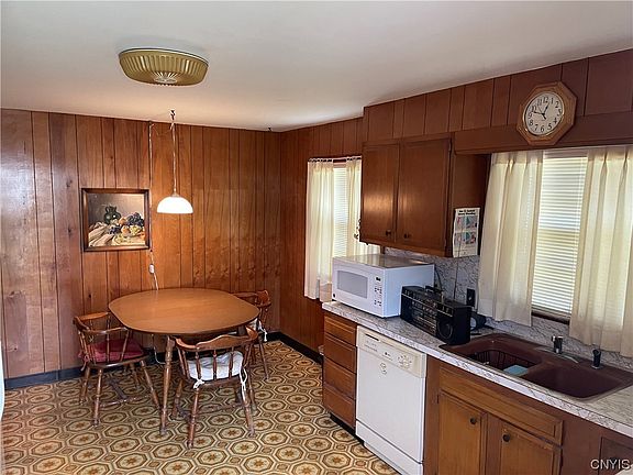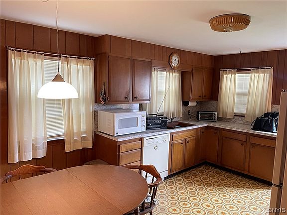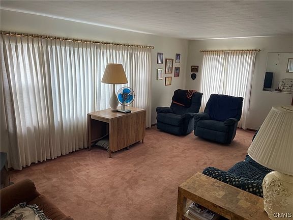 Come see this unique home that with a little TLC could be just what you’re looking for. First floor features an eat-in kitchen, large living area, and 2 bedrooms. The upstairs which can have its own private entrance, perfect for an in law suite, features 3 additional rooms currently staged as a living room, bedroom, and kitchenette. The large double looking lot is perfect for outside living and entertaining. Located in the East Syracuse Minoa school district on a quiet street close to shopping and highways for your convenience. You don’t want to miss this one.