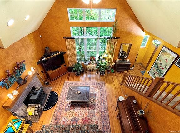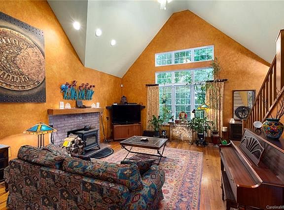 This beautiful home is located in a private, wooded community 15 minutes from downtown Asheville, it's well situated for those who want privacy with access to city amenities. Artistic features abound within the open floor plan with cathedral ceilings and unique Antique Heart of Pine wood floors. The deck is constructed with Canberra wood and has built-ins for convenience. The living room boasts a vaulted ceiling and wood stove fireplace insert that can also use gas. Get cooking in the open concept kitchen with gas stove. The basement has been a successful AirBnB, bringing in 8-12k/yr from bookings on weekends only. Relax and entertain outdoors on the back deck with the sounds of a serene waterfall and beautiful Koi pond. Protected by ADT home security with cellular remote, this home has it all and more! Enjoy the video walk-through! Unincorporated and no HOA for AirBnB possibilities!