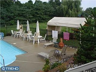 SWEDESBORO Stunning 2-Story Colonial located in a quite cul-de-sac on 1 acre in Woolwich! Tastefully landscaped yard, complete with pavers,sprinkler system, stone lighting posts, and wrought iron fence. The back yard features a two tier deck overlooking the crystal clear heated L-shape swimming pool. This 4 bedroom 2 1/2 bath home is highlighted with crown moulding, columns, ceiling fans, recessed lighting, gas fireplace, finished basement, main office, ceramic floors throughout the hallways and kitchen. Eat-in kitchen features large, shelved pantry, center island, stainless steel appliances, upgraded cherrywood cabinets and easy access to the backyard. Masterbedroom features vaulted ceilings with a big paladium window, two walk-in closets, M/Bath with Jacuzzi tub, his and her vanities, decorated ceramic tile and crown molding complement this Master suite. Excellent schools. Home warranty is included with this magnificent home. Easy access to all major highways.