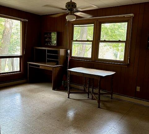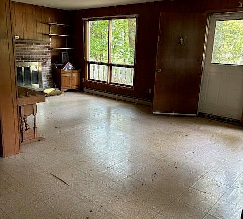 Diamond in the rough. This home is waiting for a new family to move in and do some upgrades. Priced to sell as is. The home offers three bedrooms ,two bath, living room with wood burning fireplace and a four season room. The home is close enough to walk to the lake. 1 car garage with a walk up 2nd. level.