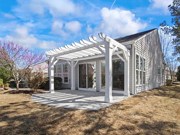 Pristine, move-in-ready ranch home within walking distance to Cary's premier 55+ Active Adult Community Center (Bradford Hall of The Carolina Preserve). Located just 1000 ft from the Community Center, which offers clubs for any interest, indoor and outdoor pools, lovely greenways, pickleball, putting greens, bocci & tennis courts, fitness center, and a social lounge -- making it easy for you to be as active and social or as quiet and peaceful as you like. 1st Floor living with 3 bedrooms, 2 full baths, a Sunroom & expanded Patio with Pergola to enjoy your morning coffee. 3rd bedroom can easily be used as a home office/den. 2-Car Garage is an extension of the home, fully painted with Epoxy Floors and custom hooks and baskets to store your tools, sports gear and gardening tools. Updates include Fresh Interior Paint, new Carpet in owner's suite and 2nd bedroom, Plantation Shutters throughout, Built-in Surround Sound Speakers in the Living Room and Speakers in every room, Custom Style Closets, dedicated gas line for your gas grill, HVAC 7 years, and more! Corner lot provides ample natural light, curb-appeal, and openness. Nestled in the heart of the Triangle, between Raleigh, Durham and Chapel Hill, you do not have to travel far for first-rate entertainment, dining, and health care. This home has the perfect size, location, and condition to help you start the next chapter of life. Visit https://carolinapreserve.com/future-residents/ for more info about Carolina Preserve Community