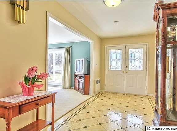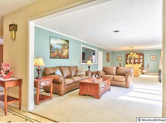 Lincroft true Mother/ Daughter home in Rimwood Estates. This 4000 sq. ft. home features 5 Br. 4 Ba. Mother section features full kitchen, Full Ba. bedroom with fireplace. Large living room dining room combo with sliding door out to deck. Direct entry. Daughter section features sun filled living room dining room combo, Family room with slider to deck. Eat in Kitchen, Guest suite or office with full Ba. Master Br. with walk in closets and full Ba. Heated in ground pool with Cabana.