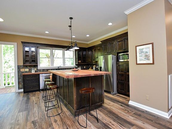 This beautiful home is located in a scenic setting far enough away to leave behind the hectic pace of day-to-day life, yet close enough to be convenient to work, medical facilities, schools, etc. This impeccable home is located on almost 10 rural mountain acres in an inviting park-like setting just up the road from the Hiwassee River and the Cherokee National Forest. Enter the home and step into the newly remodeled kitchen with a gorgeous custom island. expansive great room with 10' ceilings, beautiful NEW hardwood floors throughout the home, a cozy fireplace at one end, and huge windows and glass doors that open out to 540 sqft of covered porch area – relax here in total comfort or entertain in grand style. Two bedrooms and a bathroom with laundry complete the main level. Upstairs a third bedroom with ensuite bath and a large walk-in closet that includes built-in drawers. Adjoining the bedroom suite is office space on the balcony overlooking the great room. Enjoy fruit from your very own trees including blueberries, grapes, apples, and peaches grown on the property. Perfect for almost anyone, it is ideally positioned to fully enjoy the recreational wonderland that includes hiking and horseback riding through the Cherokee National Forest, as well as world-class fishing and rafting in the Hiwassee River. Don't miss this exciting opportunity!