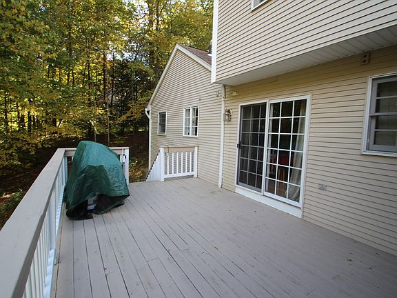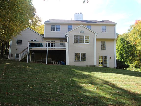 Colonial with 4 bed. 2.5 baths, 2 car gar, featuring close to 2,600 sq.ft on main 2 floors, plus a partially fin walk-out basement divided into 2 rooms full size windows and FP, perfect for man's cave, media room, exercise room. Remodeled kitchen new granite counters, plenty of cabinetry, breakfast area access to 19x12 deck. Baths with tile floors recently updated with granite counters, mud-room with laundry area off garage. Generous living space on 1st floor including a dining room with wood floors that can fit a large table.Large LR with french doors, huge family room featuring a FP and skylights for a bright and sunny room all year round, foyer with two closets, and updated powder room. 2nd floor has all four bedrooms and 2 full bathrooms with new paint and granite counter tops. Master bedroom has cathedral ceilings, and large walk-in closet. Most rooms recently painted with trendy colors, white woodwork, and large windows. New Water treatment system, new tile in mud room, new custom steel chimney cap, new carpeting in bedroom, floors, refinished hardwood floors through out. Located in desirable High Ridge subdivision, close to exit 67 for great commuting to shopping and Hartford. Uconn is about 17 minutes. Foundation has been inspected by a professional engineer, no issues found, available in attachments in MLS. New Crown boiler and heating system installed 1/28/20. Basement is plumbed for additional bathroom. PROPERTY BACKS UP TO 8.33 ACRES OF TOWN PROPERTY.