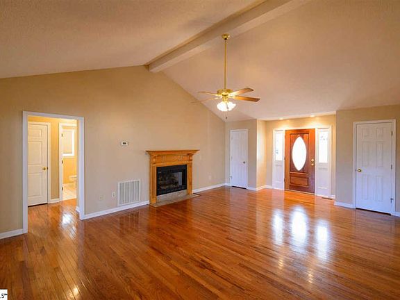 For additional information on this hard to find single-level home in terrific location text the word "UPSTATE" to 59559! This 3 bedroom, 2.5 bath home offers just over 1,800 square feet and is completely move-in ready and has been freshly painted with neutral colors throughout. This home has so many great details to highlight. You will notice right away the expansive covered front porch that is perfect for relaxing with neighbors or keeping an eye on the kids. Once you enter the home, the hardwood floors will immediately draw your attention. The hardwoods can be found in almost every room in the house! The great room is huge and features a vaulted ceiling and a gas logs fireplace. From the great room you can also access the dining room, kitchen, breakfast area and two additional bedrooms. The dining room is adjacent to the kitchen and has a continuation of the hardwood floors. In the kitchen, all appliances stay with the home, including the refrigerator, and includes granite countertops and lots of cabinet space. A breakfast room is also off the kitchen making informal dining convenient. On the same side of the home you will find the large master bedroom which offers a walk-in closet and full bath with two sinks and separate garden tub and shower. On the opposite side of the home there are two additional spacious bedroom with hardwood floors and a shared full bath. Other features inside the home are a walk-in laundry room which includes the washer and dryer and a half-bathroom. Connecting the inside with outside is a nice screened porch that leads to a deck that is perfect for grilling and offering a transition into the large backyard. The spacious yard offers lots of room for kids, pets and/or gardening projects. Other reasons why you should make this your next home are the new roof installed Oct 2018; two car garage with a storage room and separate room for the hot water heater; upgraded double hung vinyl windows throughout the home; ceramic tile in full bathrooms; laminate tile in kitchen, half-bath and laundry; ceiling fans in most every room of the house; zoned for terrific schools; super convenient location to I-85, Hwy 123 and Hwy 153. Come see this amazing home before someone makes it their own.