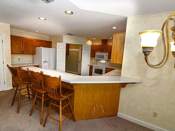 - Interior: Ceiling Beamed, Lighting Recessed, Washer/Dryer Hookup, Ceiling Vaulted, Fireplace, Floor Tile, Floor WW Carpet, Pantry, Split Bedroom, Window Treatment All, Breakfast Bar, Floor Vinyl, Built-In Bookcases, Shelving, Floor Laminate, Ceiling Tray/Cofferd, Window Bay, Pull Down Stairs, Inside Storage, Newly Painted