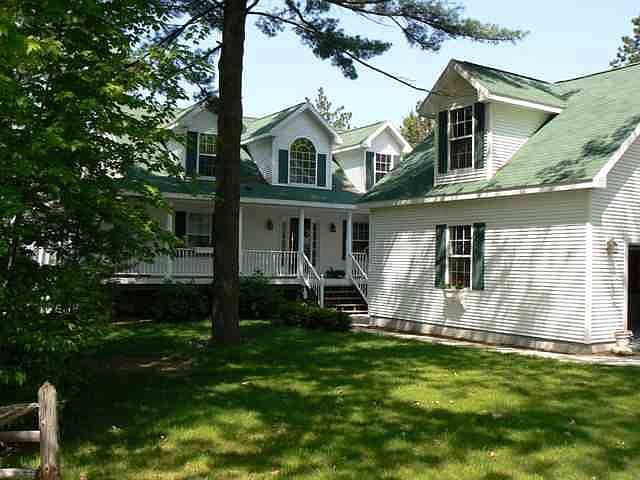 Enjoy spectacular sunsets from this Mackinaw Island style home on the east side of Higgins Lake. Three bedrooms, 3-1/2 baths with open floor plan. Living area features a custom stone fireplace with gas logs and thermostat for back up heat. The open living area has high ceilings, wood floors and leads to a covered three sided porch overlooking the lake. Walk out lower level has a full bath and is partially finished. Large attached garage with upper floor for storage or future recreation room.