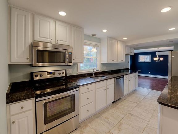 Simply delightful three bedroom ranch home with over 2,200 square feet of living space in a desirable neighborhood on an oversize corner lot with two paved driveways. This lovely home had a major renovation in 2016 with new kitchen including granite counters, tile floor, recessed lights & stainless appliances, two new full baths including tile floors & vanity w/granite top and laundry room w/its own sink. Freshly painted throughout, hardwood and tile floors on the main level, new a/c in 2016 & 2018, New water heater in 2017, new front door 2019, many newer windows throughout, efficient gas heat . The lower level has been finished with laminate flooring in the open family room, bar area and laundry room. Outside is a private brick patio in the rear of the home and fully fenced in rear yard installed in 2016. Built-in one car garage make moving groceries in & out a breeze. This bright and sunny home is truly-key and in move in condition. Great commuter location near many major routes.