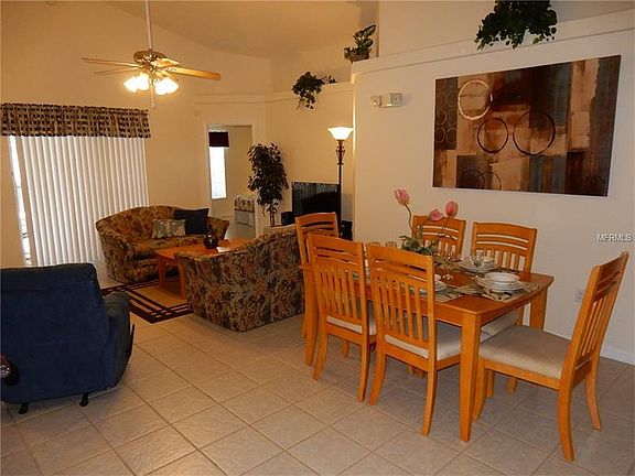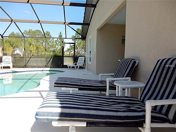 Situated on a bold corner plot this home is a beautiful open concept single story home furnished to a good standard located on the very popular Lake Wilson Preserve. The home features fully tiled floors and has 4 bedrooms and 3 bathrooms. The living room has a vaulted ceiling. The home benefits from two almost identical master suites with en suite bathrooms which have walk in showers, and walk in closets, while the third bathroom has a tub and shower giving real flexibility in the accommodation. All bedrooms have good closet space and there is a large closet in the entrance hall, currently used as an owners lockout. The West facing pool deck and covered lanii is a great area to enjoy a view of the sunset. The home has been well maintained and was repainted inside and out recently. The home is just a short drive to Champions Gate golf course, 12 minutes to Disney and is zoned for short term rental. The home has been very successful in the short term rental market in a very popular well maintained community, and has a number of future bookings currently in place . These may convey on sale. The monthly HOA fee includes the supply of a basic cable TV service, and pool and yard care.