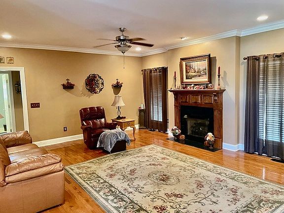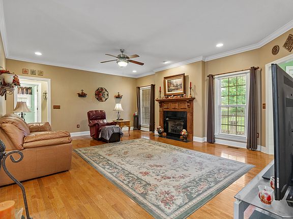 Located at 103 Hunters Ridge Dr. in Tullahoma, TN, this stunning home is listed for $399,900 and is situated in the desirable Hunters Ridge Subdivision. The residence features 4 bedrooms, 2.5 bathrooms, and an unfinished bonus room, offering ample living space. Additional highlights include a floored attic, covered back porch, ceiling fans, fluted moulding, and a two-car oversized garage. The interior boasts an entry foyer, a formal dining room with 11 ft ceiling and wainscoting for perfect dining experiences, hardwood, tile, and carpet flooring; recessed and dimmable lighting, and a well-appointed kitchen with a bar area and custom cabinets. Home also features newer refrigerator, gas logs, double vanities in both bathrooms, and a wonderful whirlpool tub in the primary bathroom. Enjoy outdoor living with a spacious patio, making this home a perfect blend of comfort and style.