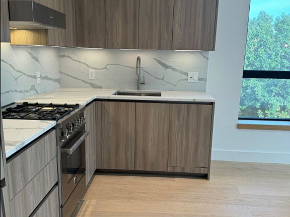 Luxury 1-Bedroom Penthouse with private roof terrace in Greenpoint Welcome to 103 India Street Apartment PHA, a stunning 1-bedroom residence in an exclusive Greenpoint rental boutique development. Located on a peaceful, tree-lined section of India Street, this modern apartment offers a perfect blend of luxury, comfort, and convenience just half a block from the India Street G train station, and 1.5 blocks from the ferry terminal. Private Outdoor Space One of the standout features of this apartment is the expansive 600 sq. ft. private roofdeck, offering an ideal setting for outdoor relaxation, dining, or entertaining while enjoying the tranquility of the neighborhood. High-Quality Interior Finishes This meticulously designed apartment boasts high ceilings and wide plank European oak floors (imported from Spain) that add warmth and elegance to the space. Large European tilt-and-turn windows fill the apartment with natural light, creating an airy and inviting atmosphere. Gourmet Kitchen The sleek, Italian-designed kitchen is equipped with premium appliances, including a Bertazzoni professional oven and refrigerator, Bosch dishwasher, and custom Italian cabinetry. Perfect for those who love to cook and entertain, this kitchen combines style with functionality. Luxurious Bathroom The spa-inspired bathroom features imported porcelain tiles from Spain, a Toto toilet, Kohler sink and vanity, and a Grohe shower with a modern LED medicine cabinet, offering a luxurious retreat after a long day. Additional Features - In-unit Bosch washer and dryer for added convenience - Large built-in closets providing ample storage space - 8-foot solid wood doors - Central heating and cooling systems in every room - Video intercom system for security and peace of mind Prime Greenpoint Location Nestled in one of Brooklyn's most desirable neighborhoods, Apartment PHA is close to bakeries, boutique shopping, and vibrant dining options. With easy access to both the G train and the ferry terminal, commuting to Manhattan and exploring the best of Brooklyn has never been easier. This well-constructed, modern residence offers the perfect combination of luxury and comfort in a serene setting. Don't miss the chance to live in this exquisite apartment with a private terrace. Contact us today to schedule a private viewing! Information about other apartments available in the building upon request.