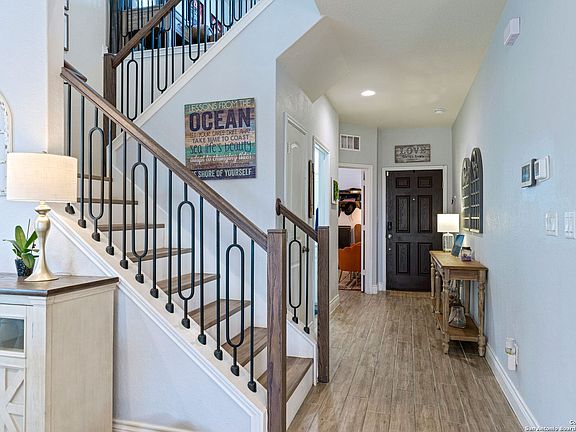 Welcome home to this beautifully maintained 4-bedroom, 3-bath home located in the desirable Southglen community, offering comfort and charm throughout. The main level features stylish wood-like tile flooring with an open-concept layout, featuring a gorgeous kitchen with granite countertops, a tile backsplash, large island, and stainless steel appliances. The flexible floor plan includes a designated work nook, perfect for remote work or homework, and a study that can easily be converted into a fourth bedroom. Upstairs, a spacious game room offers the ideal space for family fun or entertaining along with bedrooms and a convenient laundry room. Relax on the covered patio and enjoy the lush landscaping while dinning al fresco or enjoying morning coffee. This home also offers access to Southglen's amenities, including a pool, playground, and walking trails. Located near I-10, you'll enjoy a quick commute and easy access to premier shopping, dining, and entertainment at The Rim and La Cantera, plus the charm of downtown Boerne just minutes away. Don't miss the opportunity to make it yours!