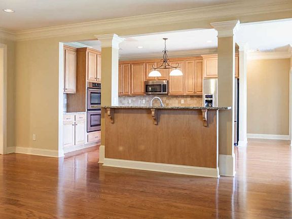 A Mark Harris Homes full brick Meadow Oak plan loaded with tile, wood and crown. Spacious family room w/wood floors, crown molding & fireplace. Stunning wood floors throughout the formal dining, living, kitchen & breakfast area. Kitchen features granite counter tops, double oven, island, stainless steel appliances, walk-in pantry & loads of cabinet space! The isolated master suite has a glamour bath includeing double vanities, tile floors, a huge walk-in closet (w/built-ins), a large jetted tub and tile shower. The four season "Champion" sun room leads to a huge "Trex" deck overlooking your private basketball court, perfect for outdoor entertaining. Huge walk out attic has floored storage.